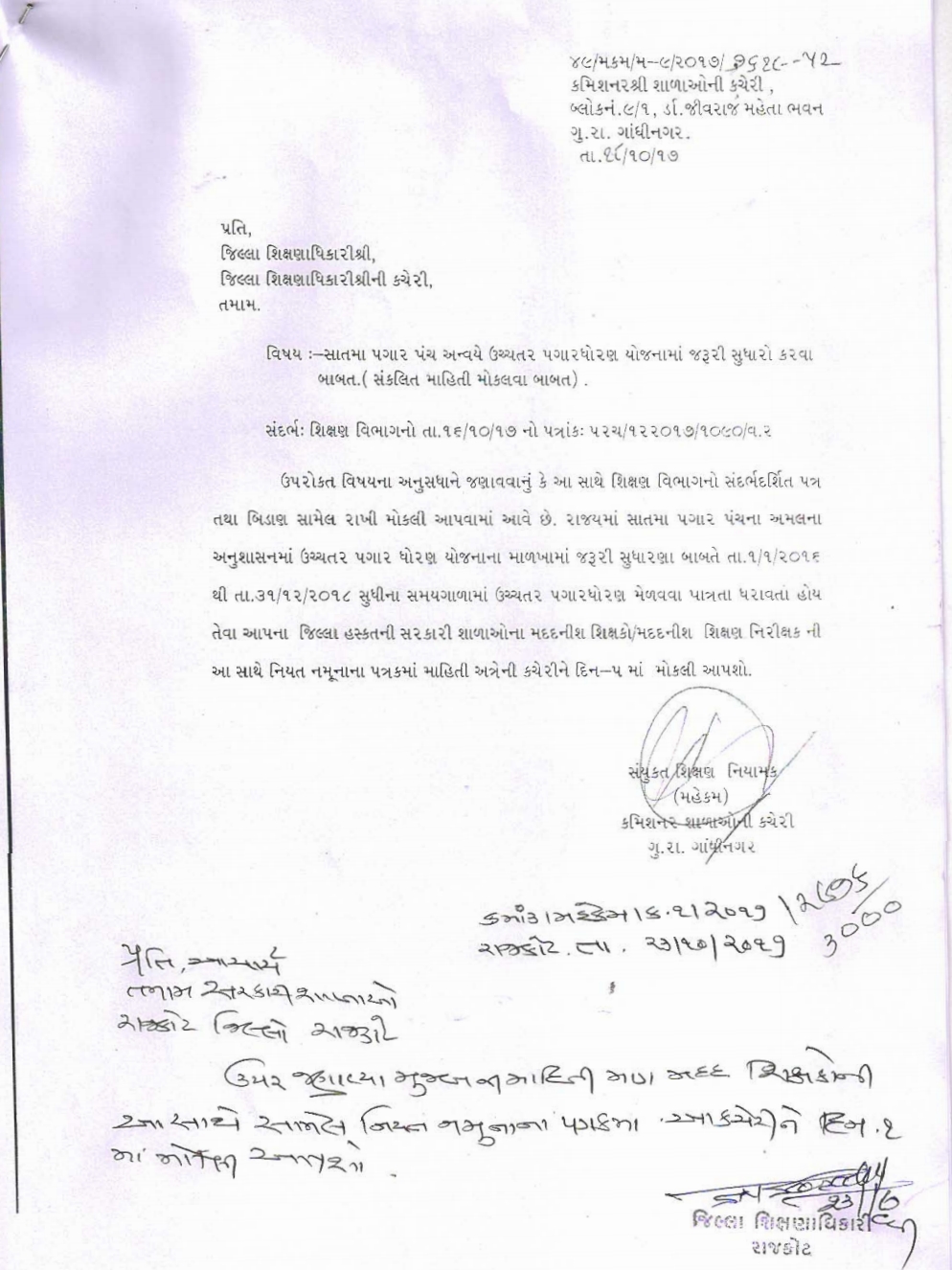 SATAMA PAGAR PANCH ANVAYE UCHCHATAR PAGAR DHORAN YOJANA MA SUDHARA BABAT PARIPATRA DATE -18-10-2017.