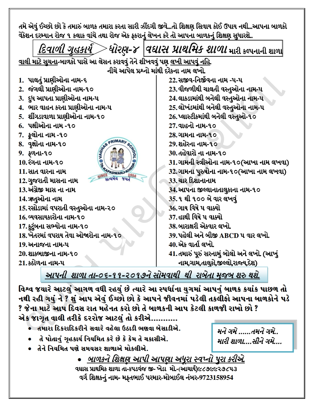 STD-4 DIVALI GRUHKARY VAGHAS PRATHMIK SHALA NO NAMOONO USEFUL FOR ALL.