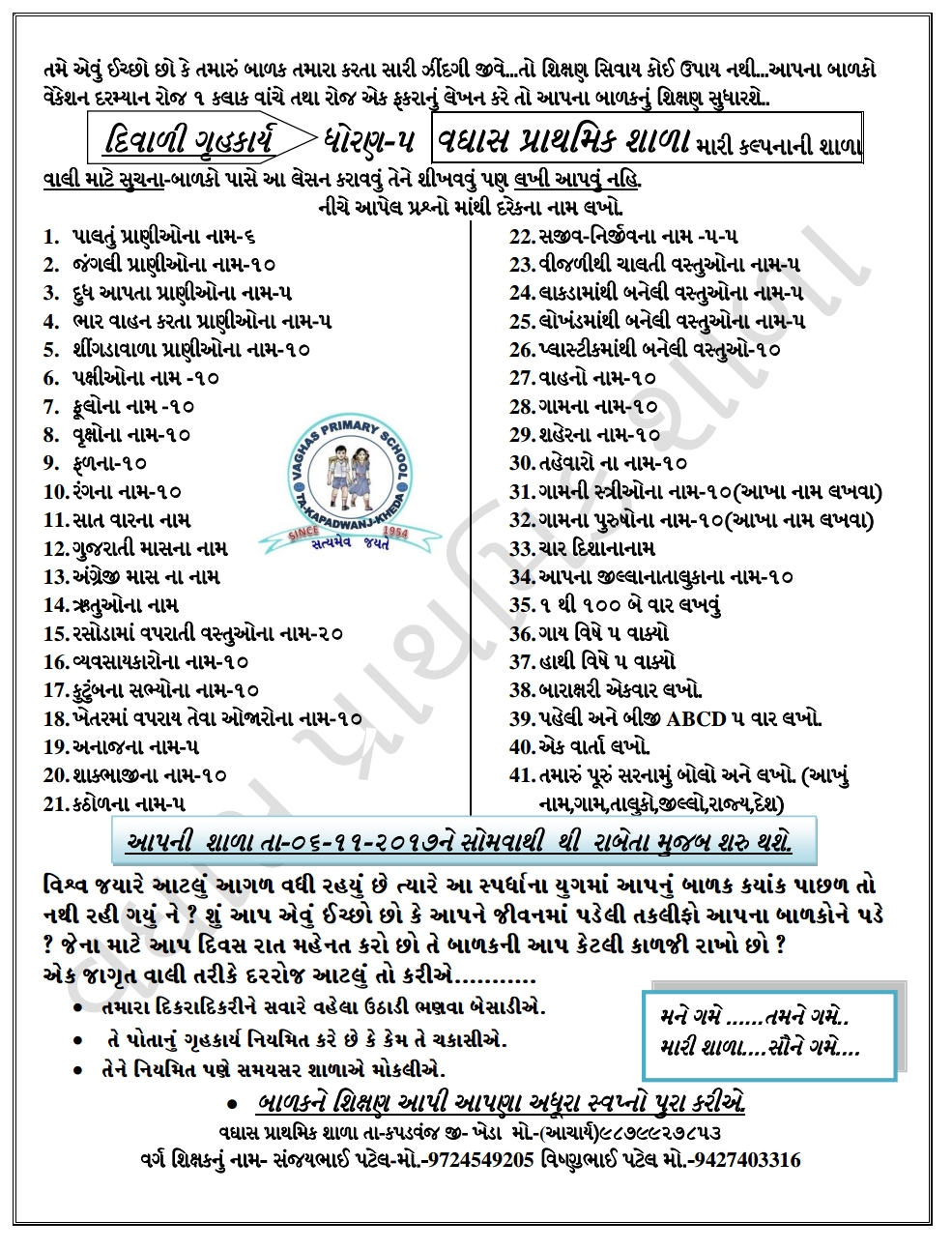 STD-5 DIVALI GRUHKARY VAGHAS PRATHMIK SHALA NO NAMOONO USEFUL FOR ALL.