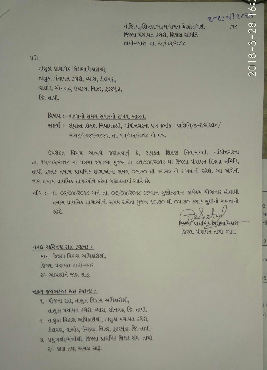 TAPI - SHALA SAMAY BABAT PARIPATRA DATE- 28-3-2018.